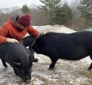 While she was initially terrified of the idea of any other pig, Bea found herself the object of Gilbert’s attention. Gilbert was only a few months old when Bea arrived, and he insisted on visiting her in her private hut. She tried to chase him out, to no avail, and she eventually got tired of standing grumpily outside her own house while Gilbert snuggled down in her bed. Gilbert’s persistence created a beautiful bond, and now Beatrice and Gilbert sleep together every night, facing each other, with her fitting perfectly between his front and back legs. Beatrice didn’t just find a home at Darrowby; she found a family.