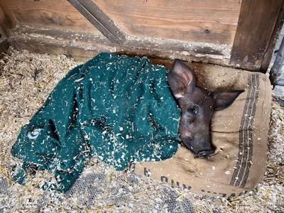 In November of 2022, we received notice that a pig was wandering our town, rooting up gardens. With the help of our wonderful ACO, we arrived at a house with our horse trailer, prepared to catch a large pig. Instead…