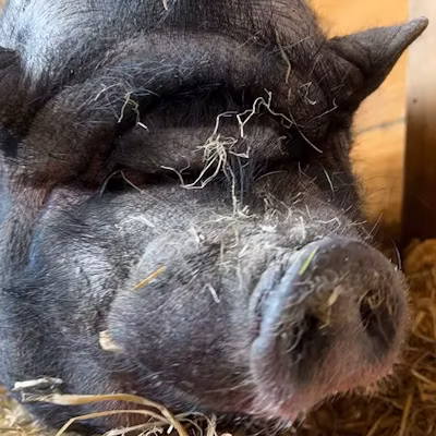 Hector is a mystery pig; he was dumped as a piglet in September 2023. Dumping animals is illegal, but it doesn’t stop people from doing it. Hector clearly had positive interactions with humans before arriving at Darrowby; he immediately flopped…